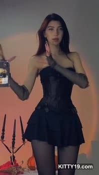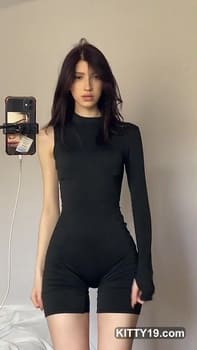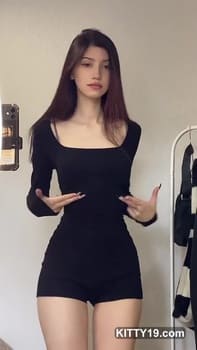Quincymood pussy in hot tight black dress! She is perfect slut with incredible legs and so small tits! Download it