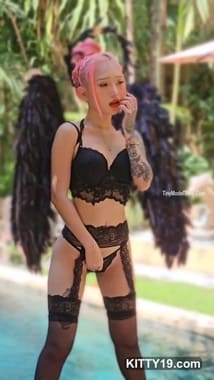 TinyModelThuy tits and ass posing in sexy black panties and sex lingerie. Beauty and hot model! Download it now.