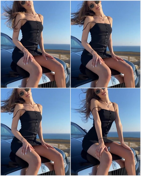 Tishko nude sexy babe with hot legs sitting on car and her tits without bra (only in t-short). Download it now!